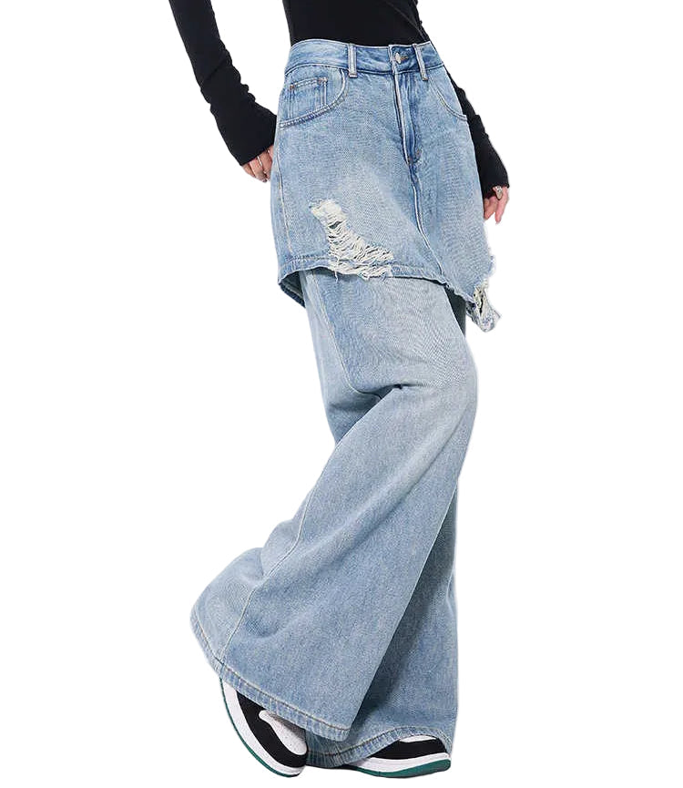 Two-Tone Vintage Wash Straight Leg Jeans – High Waist Denim