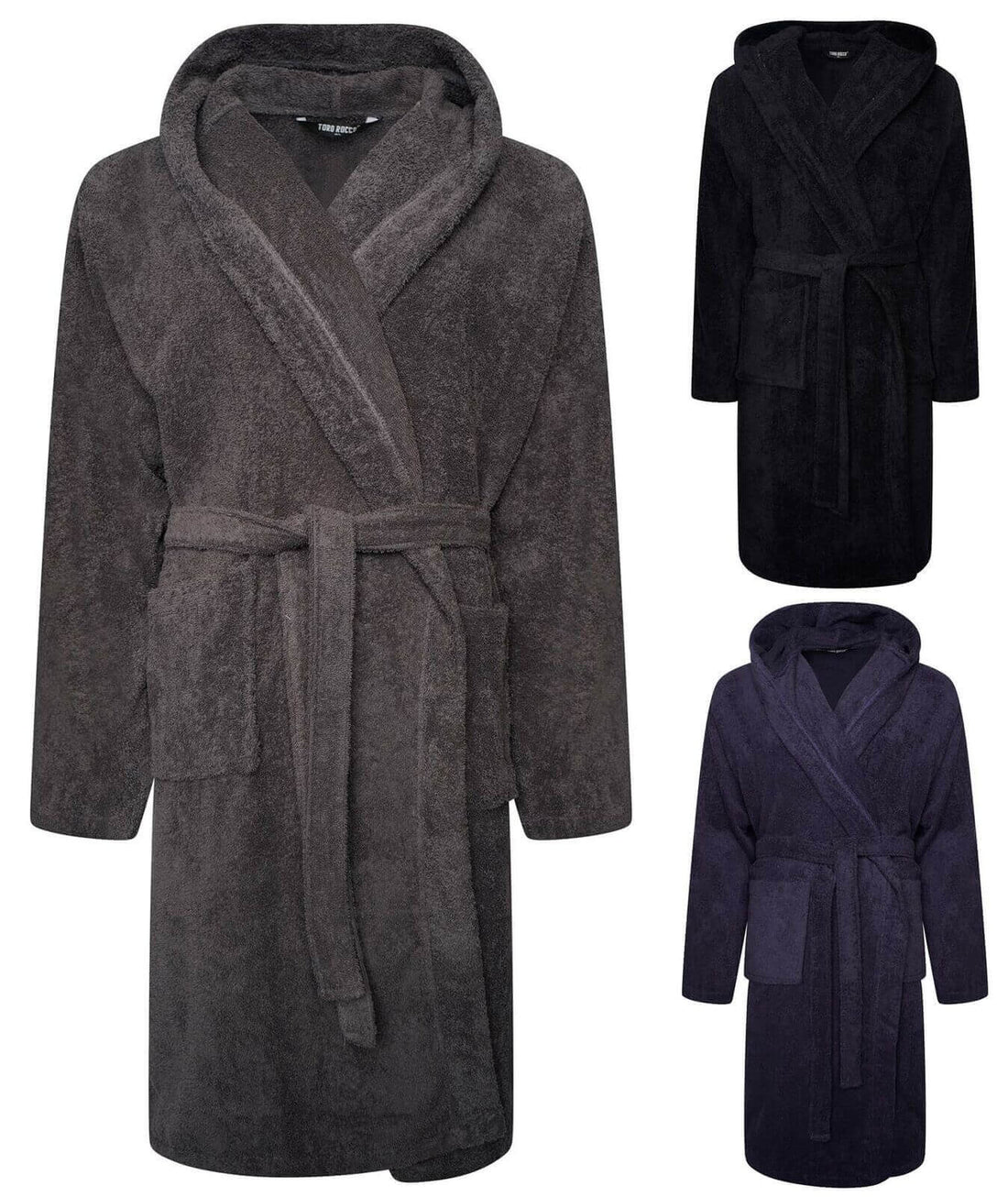 Hooded Mens Bathrobe Super Soft Terry Towelling Ultra Absorbing Flannel Black Navy Charcoal Long Pile Ideal for Shower Spa Home Gym Hotel by Toro Rocco