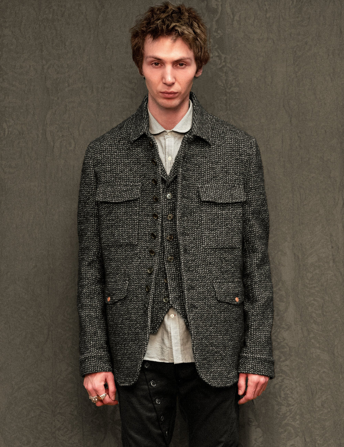 IMMORTAL Monaco Car Coat - Tweed Charcoal and Black