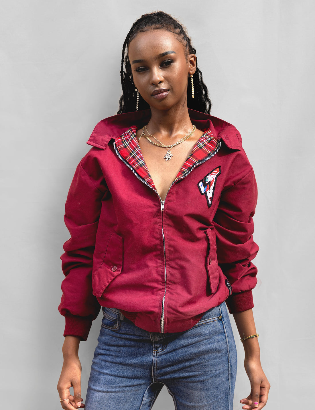 Yumi Blue Chambray Quilted Jacket With Reversible Floral Lining