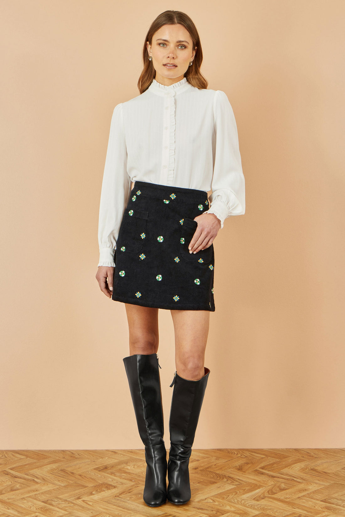 Yumi Black Flower Embroidered Cord Mini Skirt