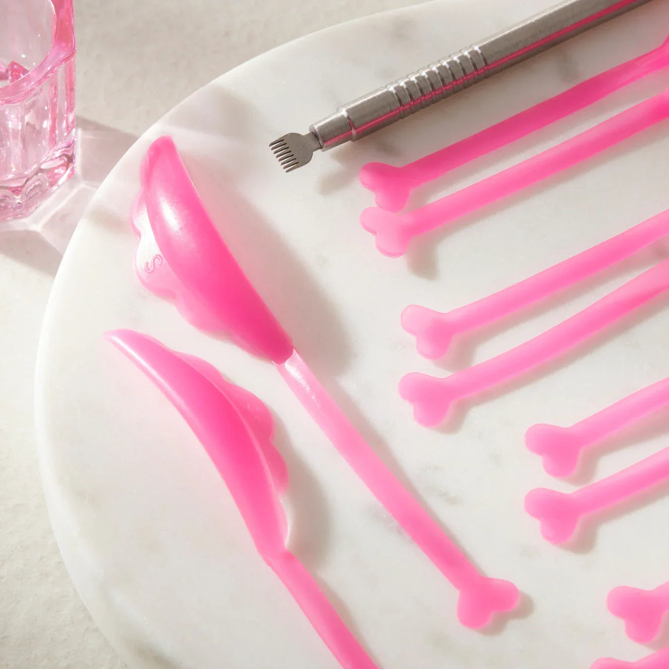 Designed for professional lash artists, these shields combine the classic perm rod shape with an integrated silicone ribbon handle, giving you total control during application and removal. No slipping, no sticking – just seamless precision.