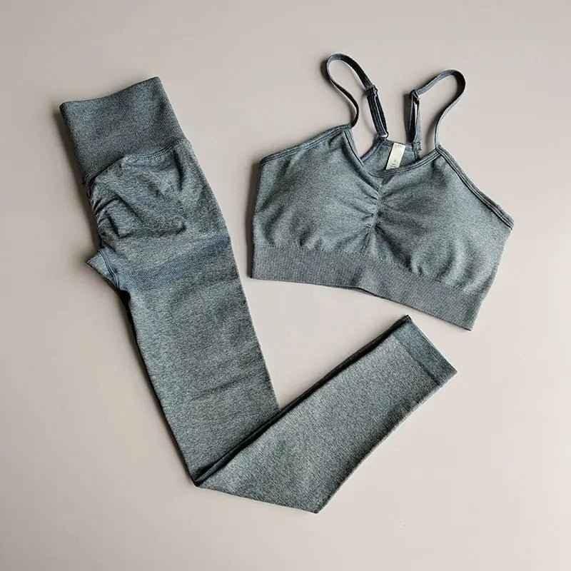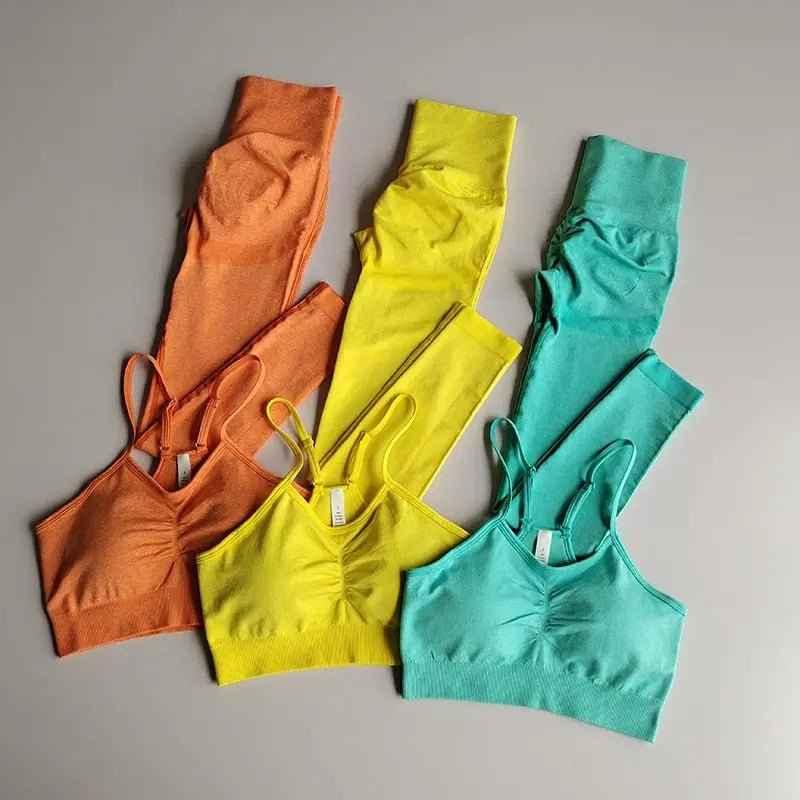 Upgrade your workout gear with our 2 Piece gym Workout Clothes for Women! Designed for comfort and style, this seamless leggings and sports bra set is perfect for all your athletic activities.