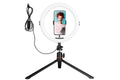Box Contents: 11" Ring Light, Table Tripod, Smartphone Holder, USB cable with light controller (power plug not included), Bluetooth Remote Control, User Manual