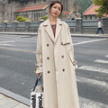 Apricot Double-breasted Thin Windbreaker Women's Mid-length Long-sleeved Coat