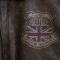 The left chest proudly displays our signature “Glory Favours the Brave” moto patch — a Uggly&Co badge of honour. Turn it around and the real statement hits: a bold Union Jack motorcycle graphic across the back, distressed to perfection for that ‘lived-in, road-worn’ edge.