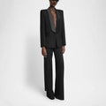 This business-style blazer features a classic green collar accent, blending sophistication with modern flair. The solid black tone adds a touch of timeless elegance, perfect for both formal and semi-casual occasions. Functional pockets enhance practicality without compromising style, making it a versatile staple for any wardrobe.