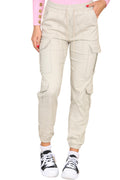 Cargo Pockets Pants Women High Waist Cropped Slim Fit Trouser