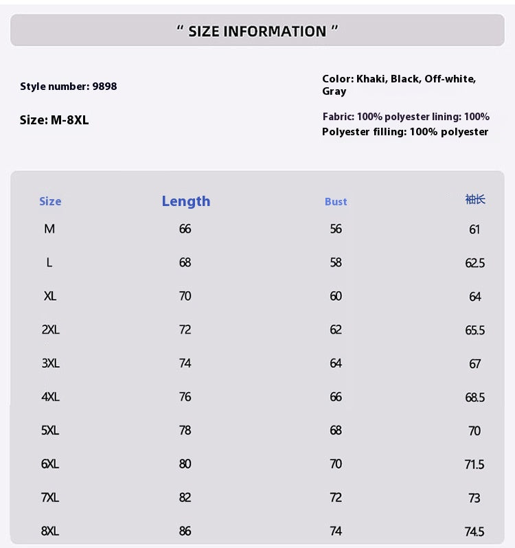 Sizes: M, L, XL, 2XL, 3XL, 4XL, 5XL, 6XL, 7XL, 8XL