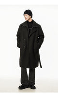 Crafted from a premium polyester fiber blend, it combines durability with lightweight comfort. The design includes side seam pockets for convenience and a belt to enhance the tailored look. The coat’s classic over-the-knee length and solid color design ensure it stands out as a statement piece for the modern man.