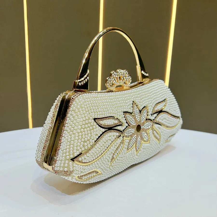 Elegant Evening Bag Fairy Handbag Wedding Reception Clutch High-End Gown Purse Square Polyester Box Bag Fashionable Printed Chain