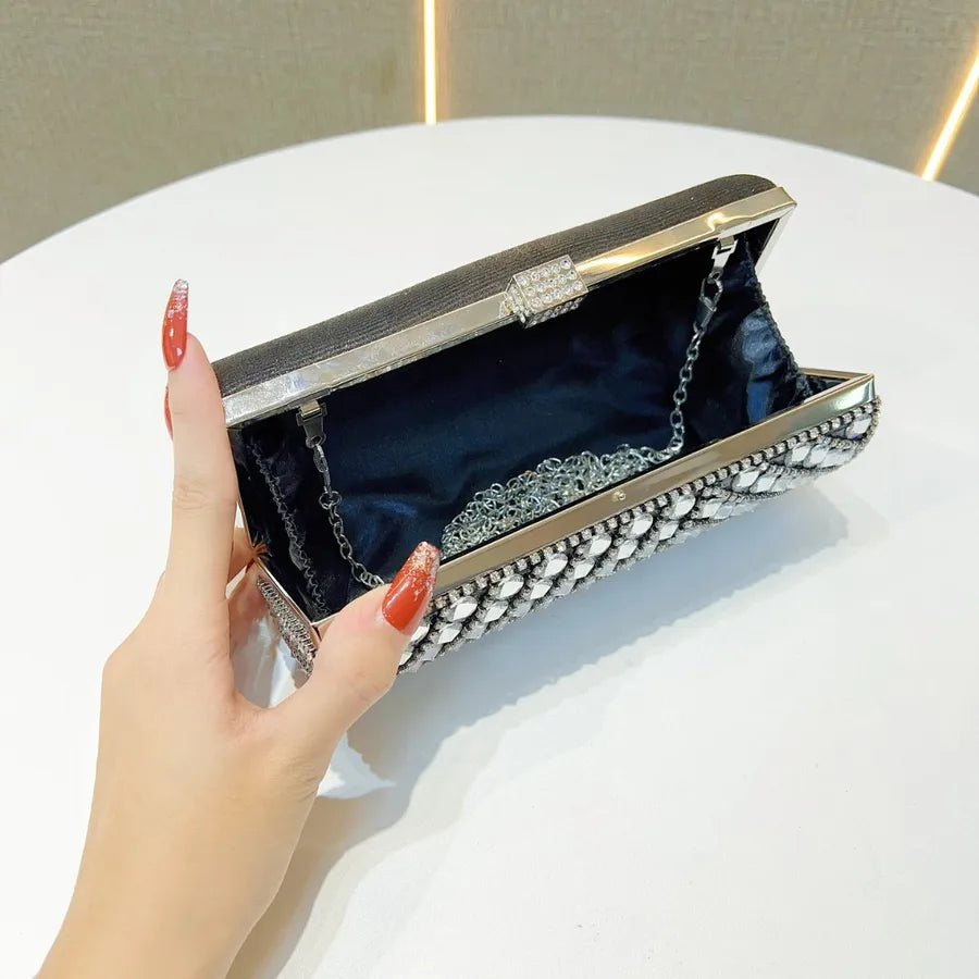 Elegant Evening Clutch Bag Women's High-End Rhinestone Decorated Dress Bag Full Diamond Bag French Bread Bag Banquet Bag
