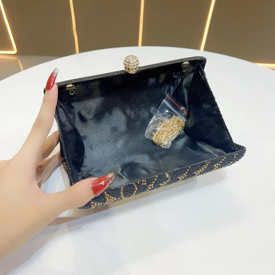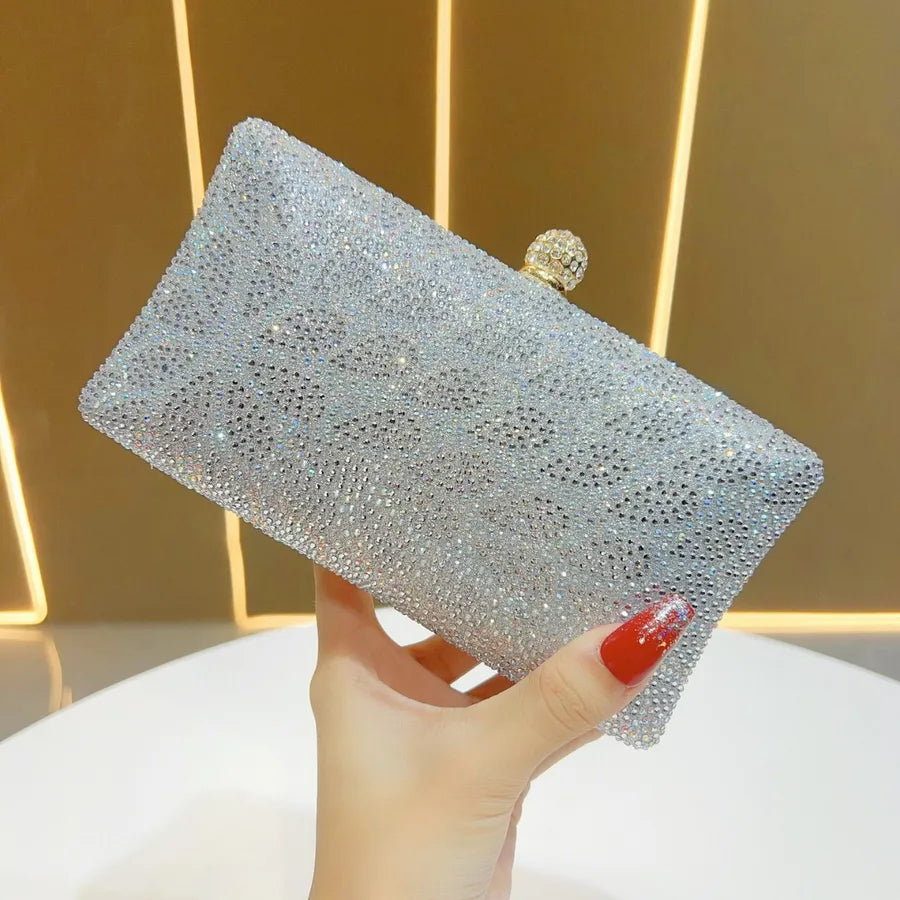 Elegant Shiny Rhinestone Evening Bag Fashionable Clutch Handbag Ladies Glittering Diamond High-End Sensation Square Polyester Box Bag