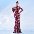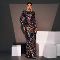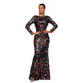 Evening Gown, Long Sleeve Crew Neck Sequined Bridesmaid Dress