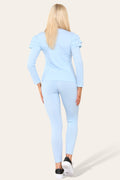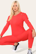 Frilled Sleeves Set Shoulder Golden Button Lounge Wear Suit