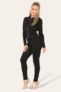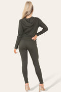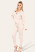 Front Pocket Zip Suit Ribbed Hooded Lounge Wear Set