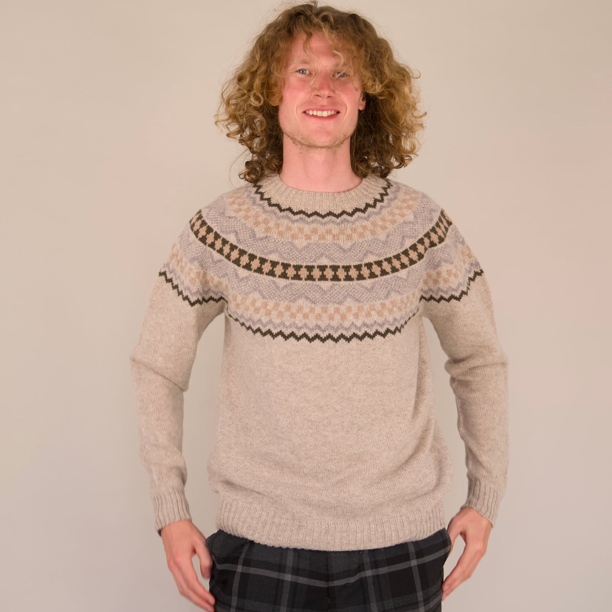 The unmistakable geometric patterns of the Fair Isle jumper have become a symbol of British culture and has long been a favourite of the Royal Family dating back to the 1920s. The Soho is our most technically advanced jumper due to the complex knitting techniques required for the seamless yoke pattern.