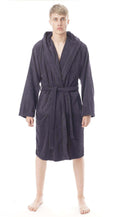Men's Hooded Black Navy Charcoal Robe, Super Soft Terry Towelling Bathrobe Dressing Gown, Ultra Absorbing Long Pile Bathrobe, Ideal For Hotel & Gym