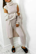 Ladies 3 Piece Suit Roll Neck Chunky Knitted Ribbed Tracksuit Lounge Set