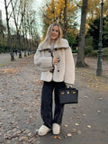 Large Lapel Fur Integrated Long Sleeve Plush Coat