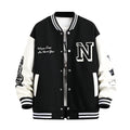 Letter Print Color Block Jacket Ins Fashion Loose Button Round Neck Baseball Coat Top For Men