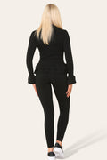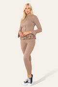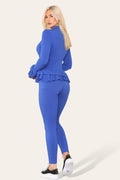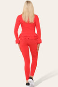 Long Sleeves Peplum Front Buttons Frilled Hem Lounge Wear Set