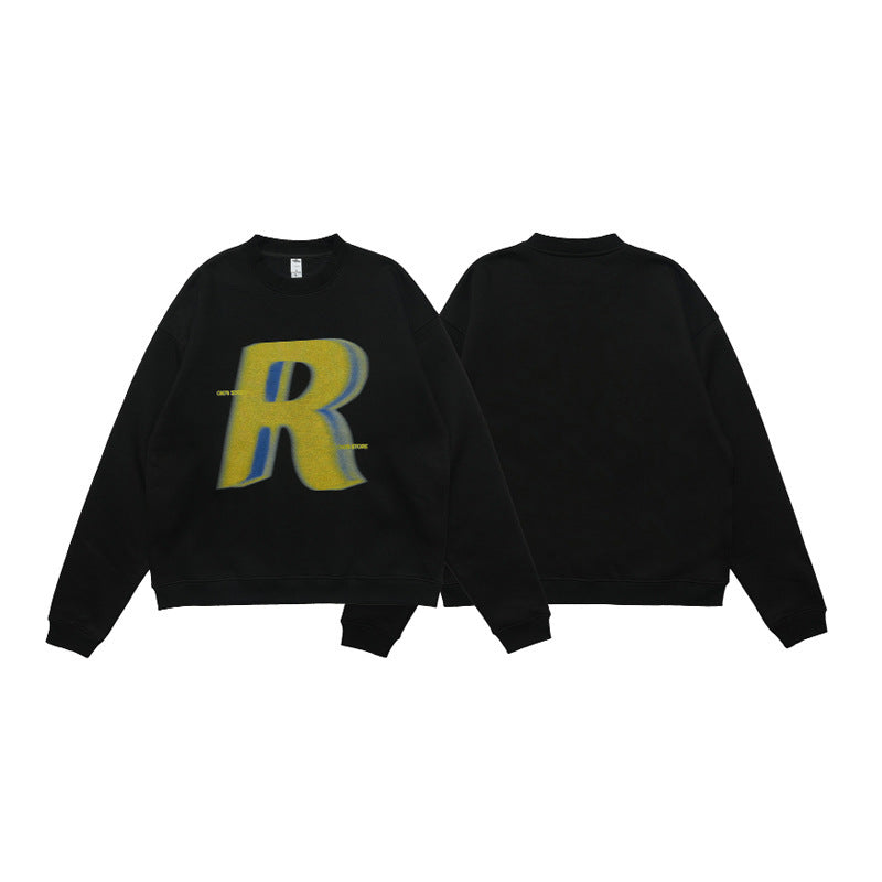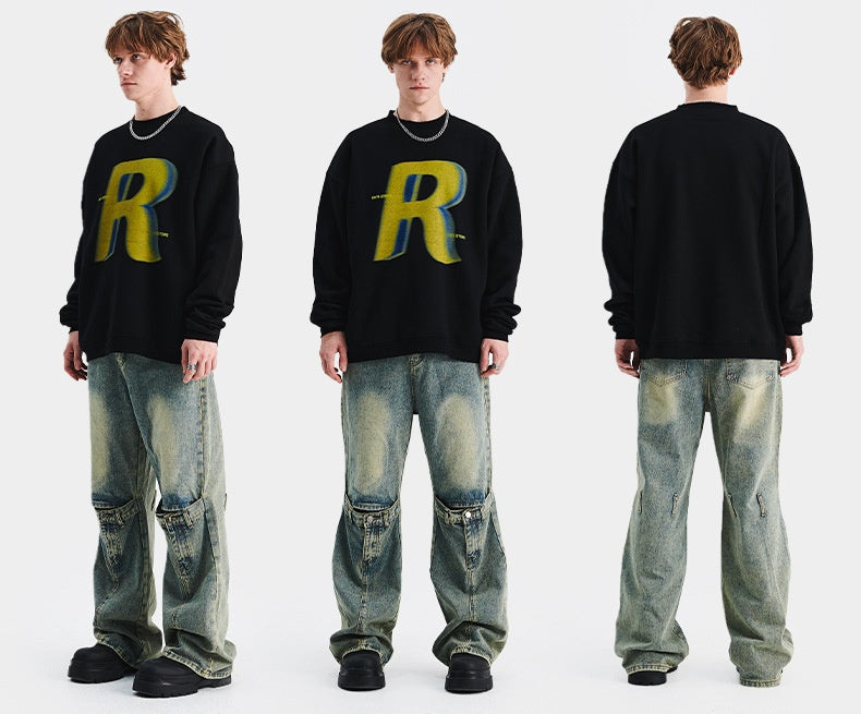 Design: Loose-fit sweater with dimensional patch pocket and bold letter print for a modern streetwear vibe