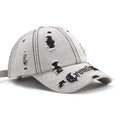 Matching Ripped Letter Print Embroidery Cap – Adjustable Cotton Dome Hat