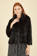 Keep the chill off at those special invites in this Mela Faux fur jacket. With a hidden hook and eye fastening at the collar this outerwear exudes glamour and is at home over sequins or shimmers.