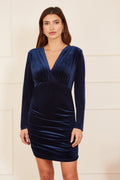 Mela Blue Velvet Long Sleeve Ruched Fitted Dress