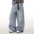Details: Mid-waist design, zipper fly, straight leg cut, washed distressing
