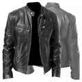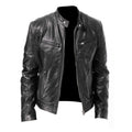 Men's Zip Cardigan PU Leather Jacket With Stand Collar