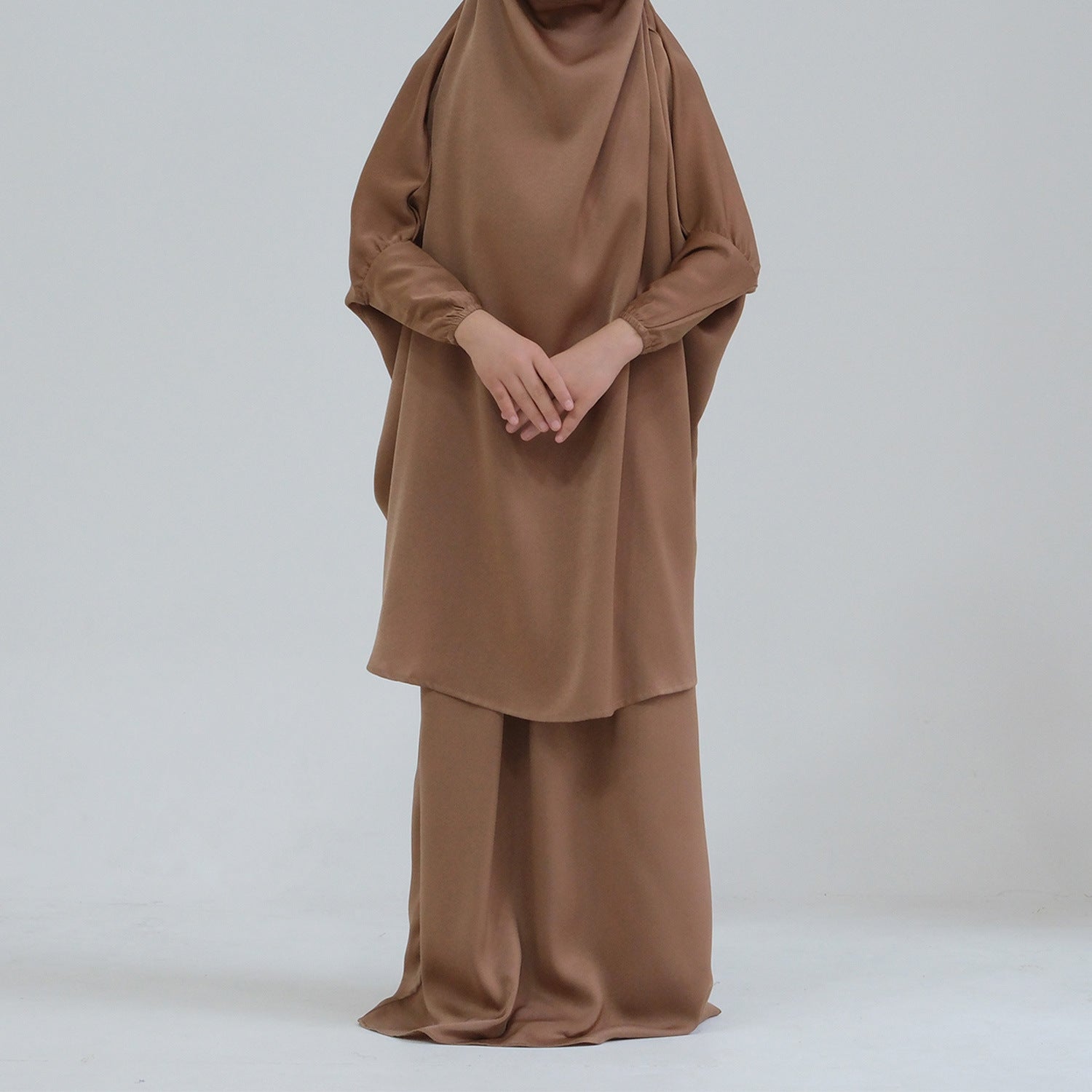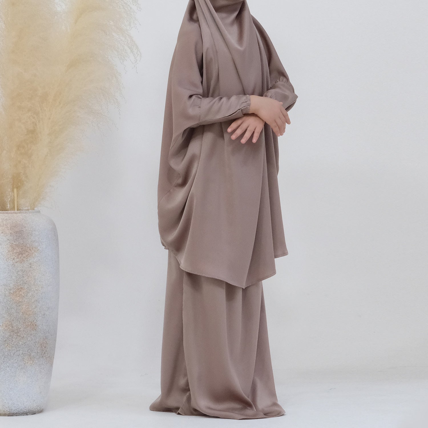This traditional Middle Eastern prayer dress, also known as the abaya, is carefully crafted for children's comfort and style. Made with high-quality materials and featuring playful colour options, this dress is the perfect way to introduce children to the prayer ritual. The loose and flowing design allows for ease of movement and the versatile design makes it ideal for everyday wear or special occasions. Experience the rich cultural heritage of the Middle East with this stylish and practical prayer dress set.