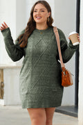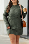 Mist Green Cable Knit Drop Shoulder Loose Fit Sweater Dress
