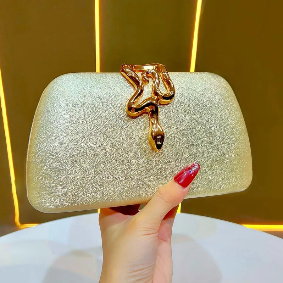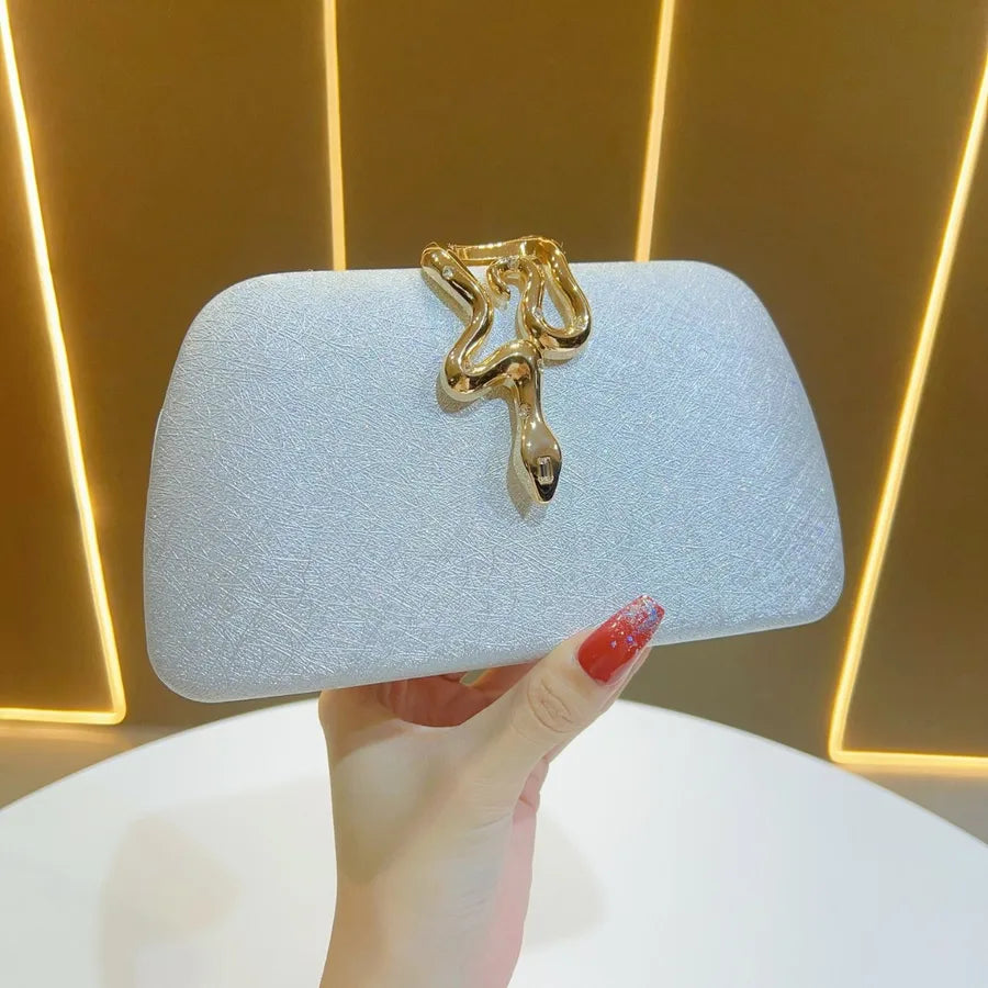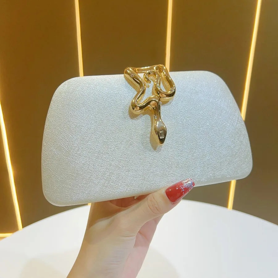 New Fashionable Ladies Snake Lock Clutch Bag Evening Party Chain Shoulder Bag Shell Shape PU Polyester Diamond Elements