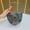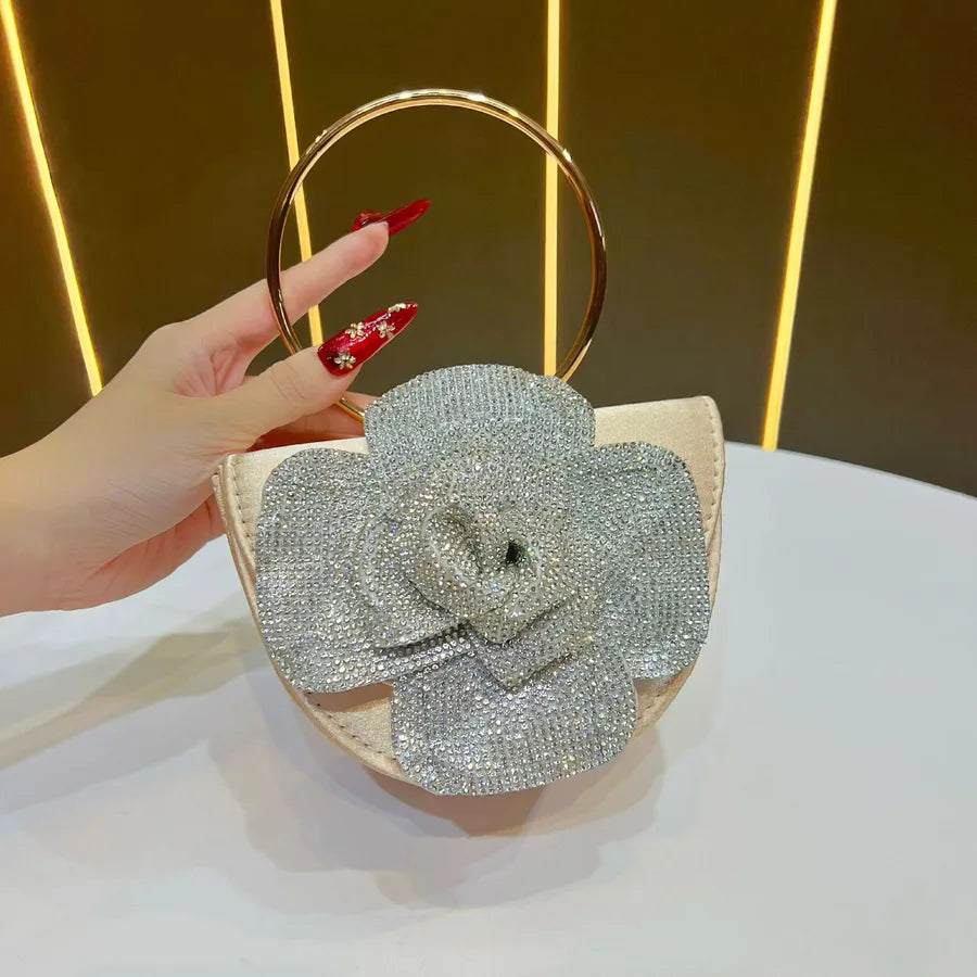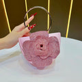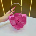 New Fashionable Tea Rose Shiny Handbag Women's Evening Bag Round Handle Shoulder Crossbody Bag For Banquet And Dinner