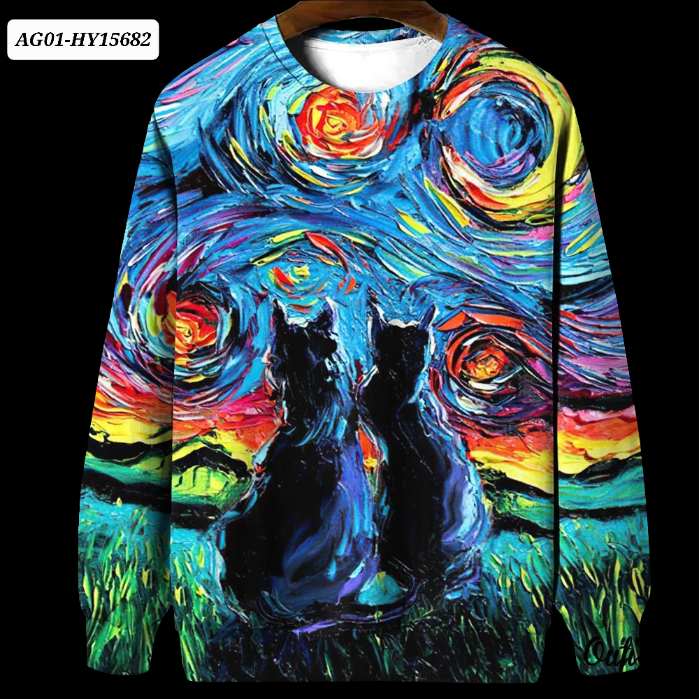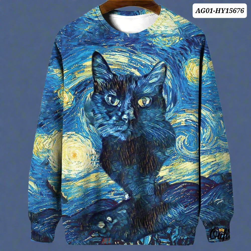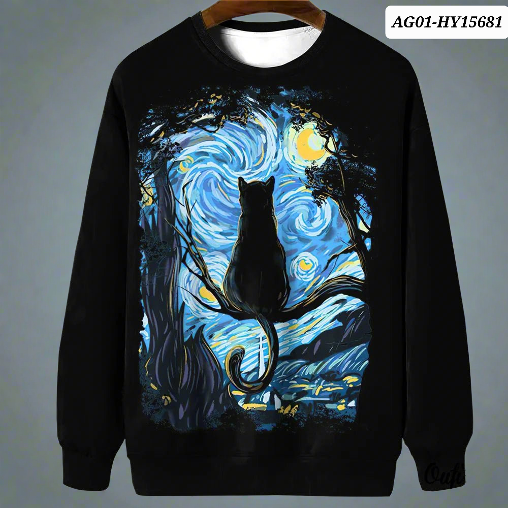 Night Sky Cat Abstract Art Plus Size Included Sweatshirt [SELECTION]