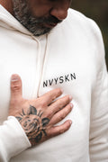 Subtle embossed NVYSKN branding keeps the look minimal and sharp, while the lined hood, ribbed cuffs, and reinforced kangaroo pocket round out its utility-focused build.