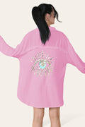 Oversized Long Sleeve Gold Sequin Eye Button Up Shirt
