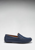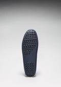 Hugs & Co. french navy leather driving loafers. We took our most popular driving loafer and gave it a make over with a full grain leather upper. Naturally tanned leather means these loafers will age very well. These also feature our new and improved construction technique and our calf leather lining. All this will give your shoes a longer life and even more comfort.