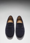 Hugs & Co. navy blue penny loafer driving shoes. These feature a new and improved construction technique and our new calf leather lining. All this will give your shoes a longer life and even more comfort.