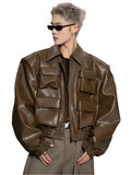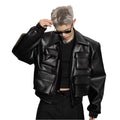 For use in both the spring and autumn seasons, this jacket is made of standard thickness faux leather with a polyester lining. It features a stylish loose fit and a turn-down collar, zipper closure, and pockets for a casual and laid-back look. Available in black and brown.