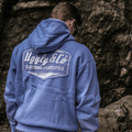 On the front, the hoodie features our iconic diamond logo in crisp white, accented with soft pink highlights. But the standout detail is found on the back — a lightweight stitched-on badge of the diamond logo, built up with fraying edges and tens of thousands of stitches. The wave design is printed directly into the badge, creating a textured, layered feel that brings the whole design to life.