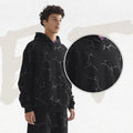 Make a bold statement with this Men'sRivet Lightning Pattern Winter Fashion Hoodies. Featuring a striking lightning pattern on a sleek black backdrop, this pullover is available in sizes XS to XXXL, offering a loose fit that ensures comfort and style.
