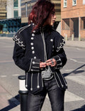 Original vintage military tunic handmade by Savile Row tailors circa 1953 Scots Guards Pipers Highland Doublet Dress. Finest example of the dark navy blue wool cloth tunic with anodised regimental tunic buttons. Large shoulder straps. Interior with black cloth lining having the original issue label. Concealed hook and clip fastenings to the front of the tunic.