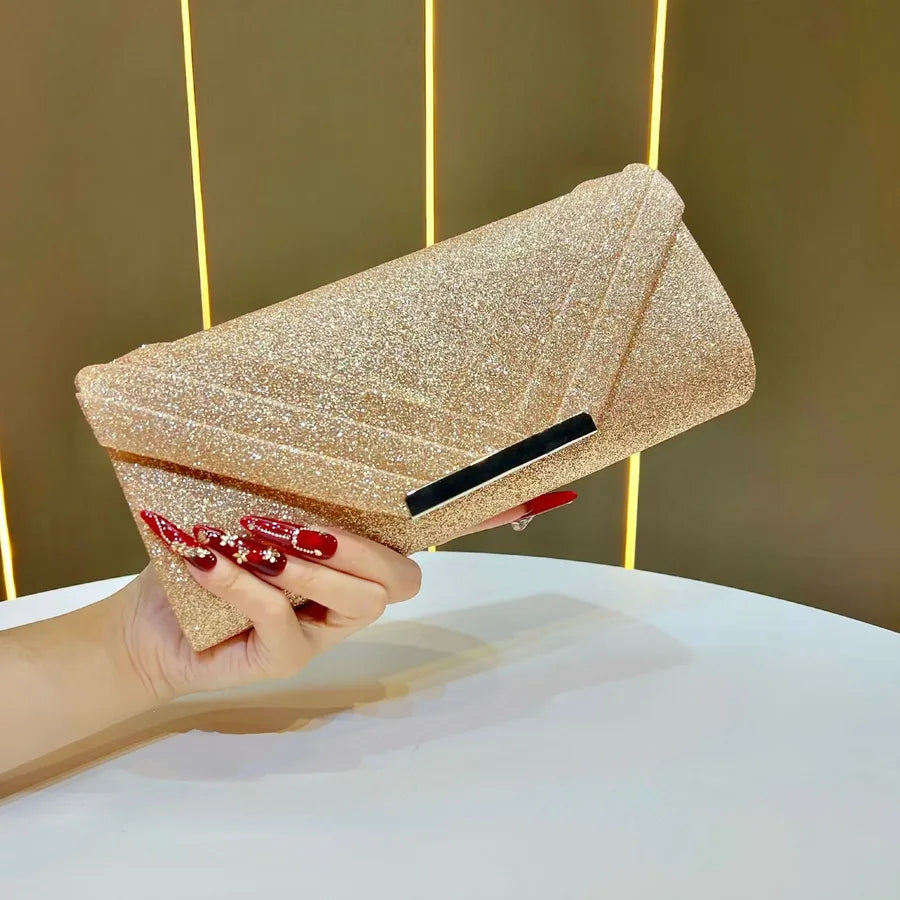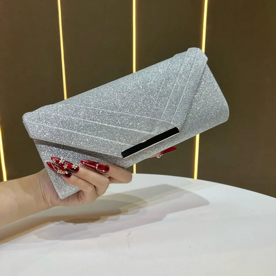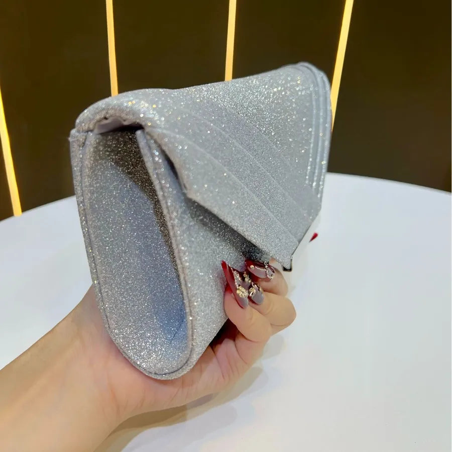 Shiny Evening Bag Clutch Chain Shoulder Bag Luxury Fashionable Polyester Square Envelope Bag Folded Edge Design For Banquet