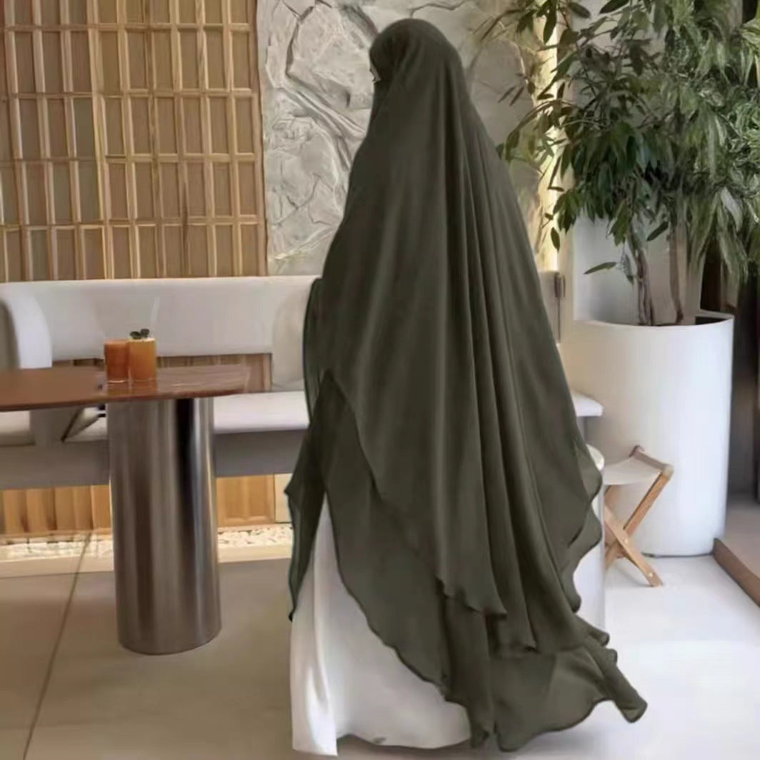 Solid Colour Front And Rear Double-layer Chiffon Large Swing Headscarf