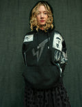 Heavyweight, 100% GOTS-certified organic cotton women's black zipped hoodie, superb quality and comfort. Featuring set-in sleeve, double layered drawstring hood in self fabric and front pockets. Features signature ST custom screen printed patches of some of Stuart’s favourite decals and our favourite Rock n Roll icon mugshot on the back.