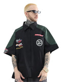 Men's cotton-silk V-neck dress shirt with full sleeves. Perfect for holiday fun with a rebellious twist!