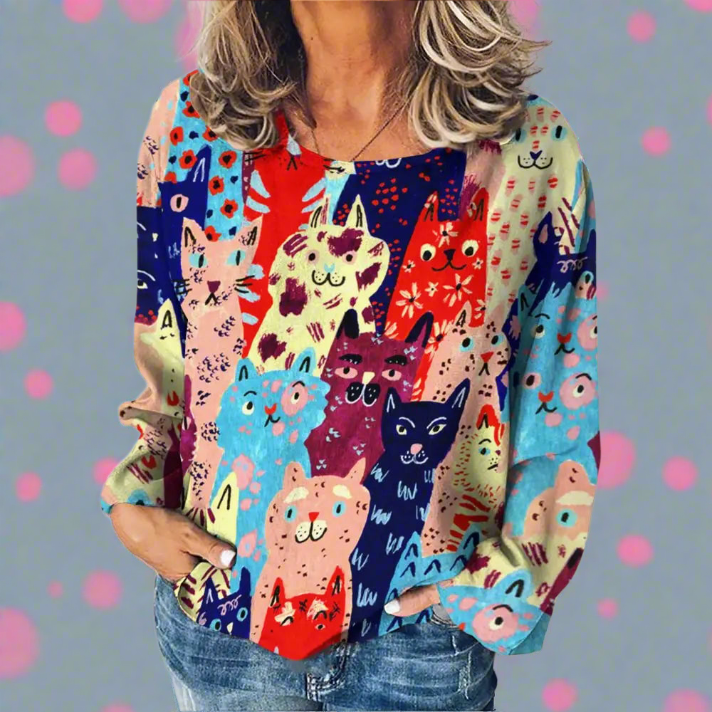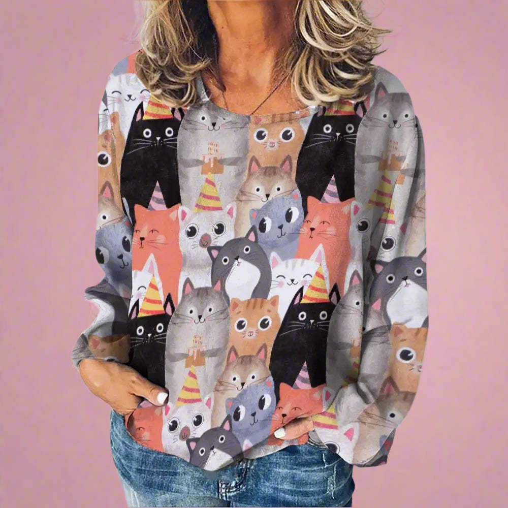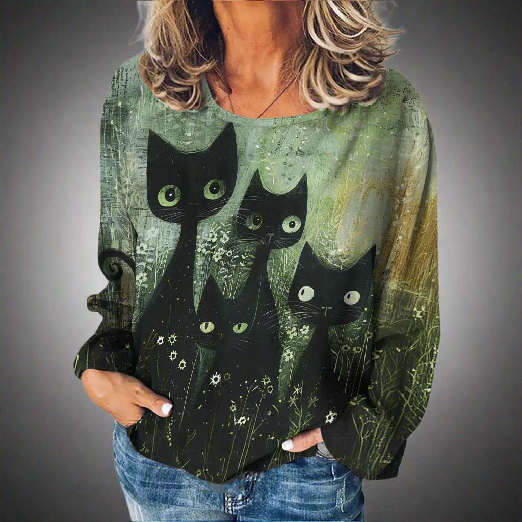 Make your wardrobe stand out with this stylish blend of comfort and personality. Perfect for cat lovers and fashion enthusiasts alike!
